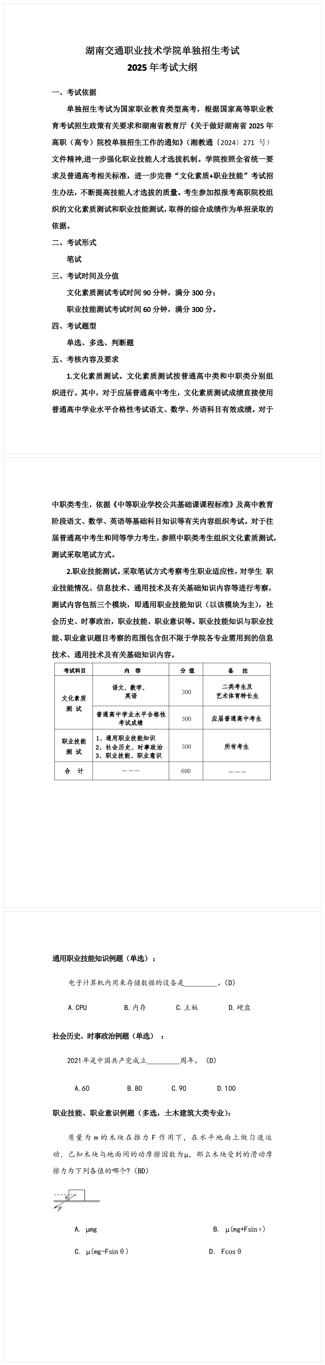 2025年湖南交通职业技术学院单招考试大纲